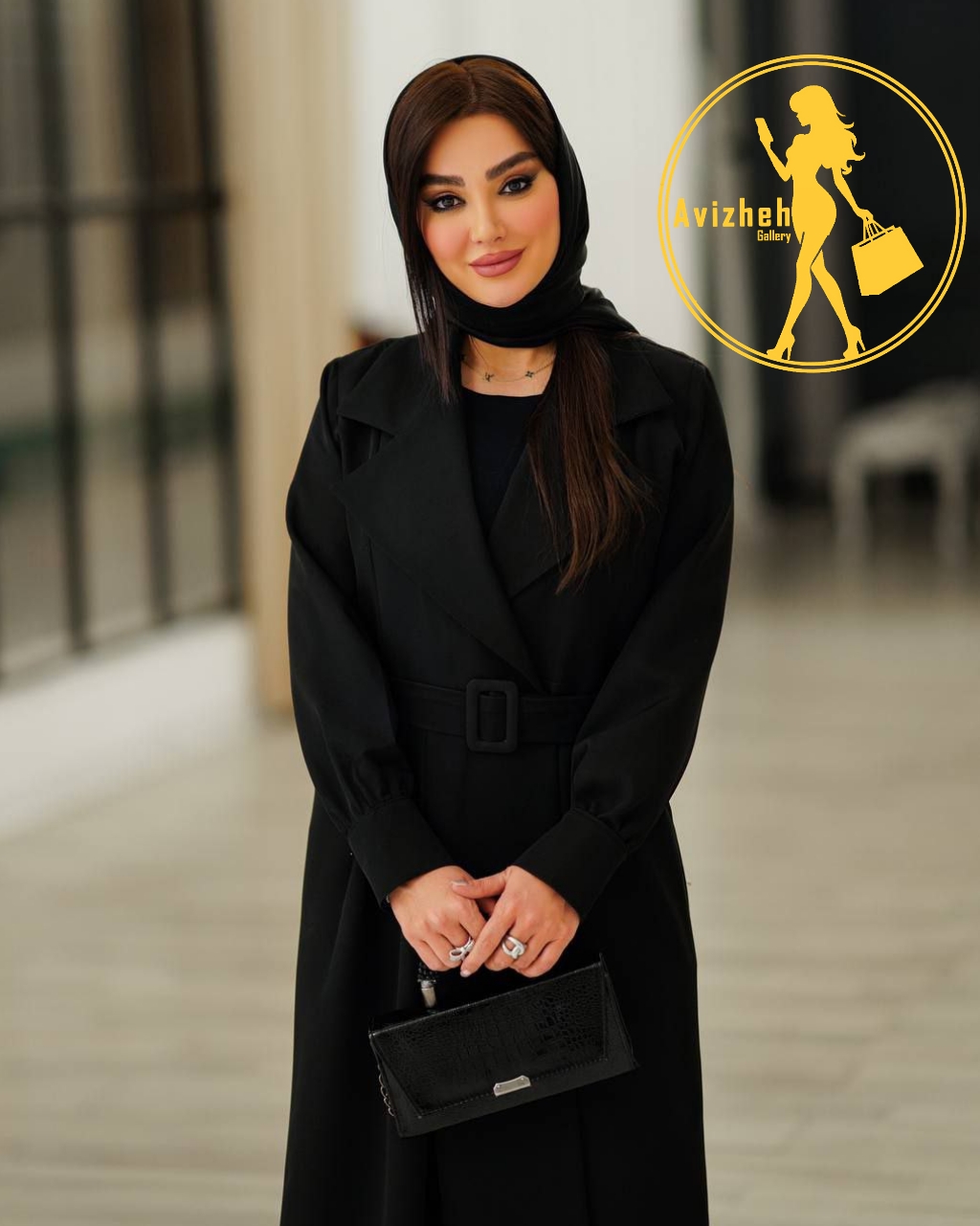 جزئیات: یقه انگلیسی تک دکمه کمربند دار