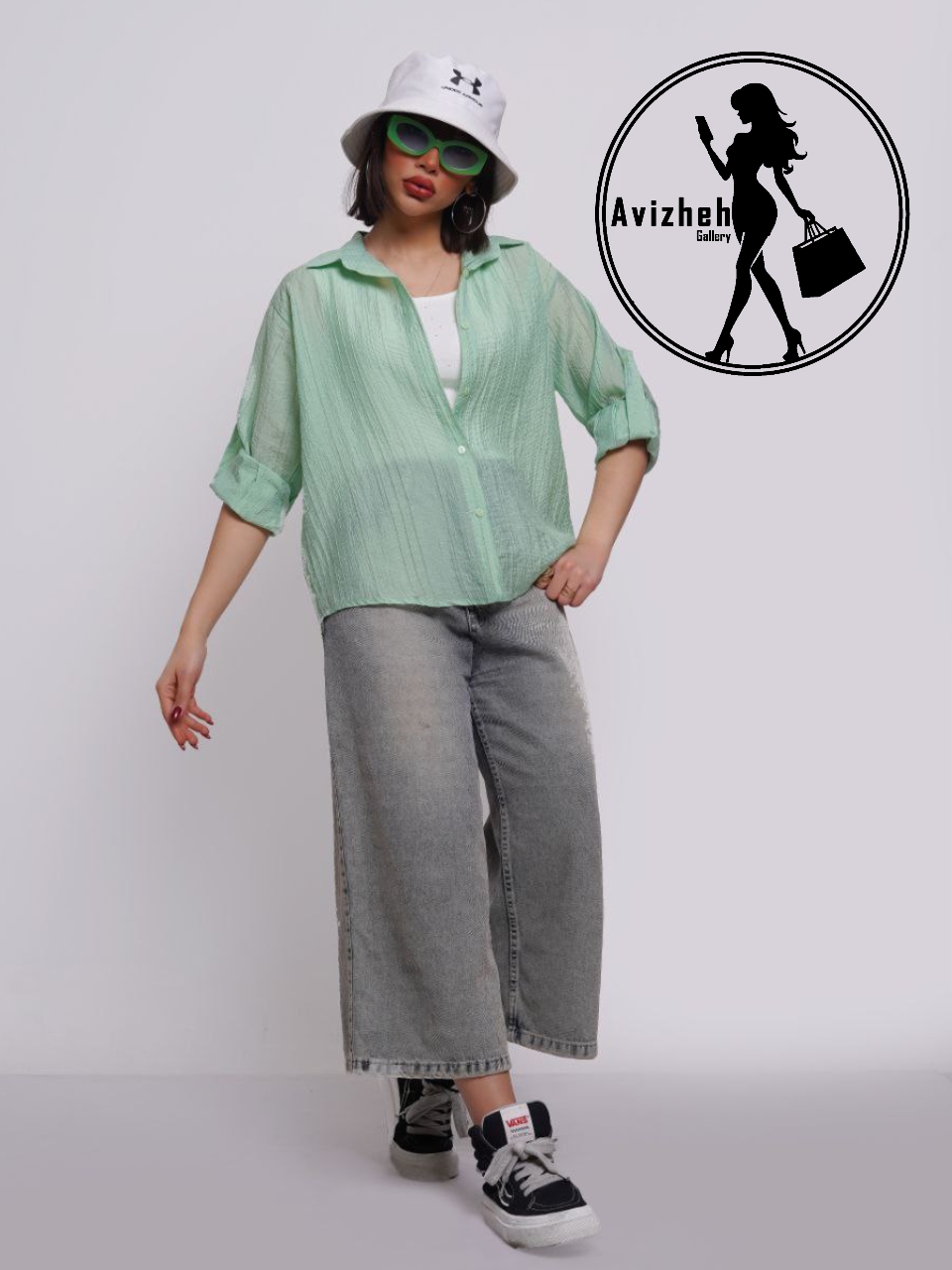 این شومیز دو تیکه هست یعنی برای زیر شومیز از یه کراپ استفاده شده که خیلی کاربردی میباشد و چون خود شومیز پری شیشه ای میباشد از این جهت برای جلوگیری از بدن نما بودن بسیار کاربرد دارد.